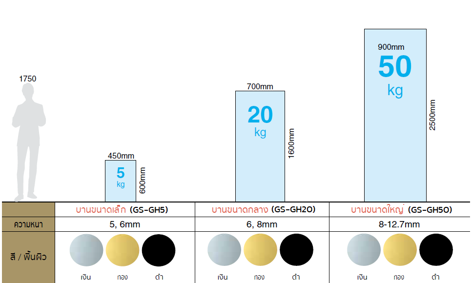 อุปกรณ์ฟิตติ้งสำหรับตู้กระจก (Glass Showcase Fitting) รองรับบานกระจกหลากหลายขนาด คุณสามารถเลือกอุปกรณ์ให้เข้ากับขนาดของตู้โชว์สินค้าได้ตามขนาดดังนี้